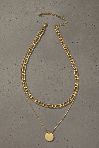 Elevate your everyday look with this double-layered gold necklace that effortlessly blends style and versatility. One delicate chain features a hand-painted circle pendant, adding a modern artistic touch that complements any outfit. The dual-chain design creates dimension and visual interest, making it a go-to piece for both casual and dressed-up occasions. Available in warm gold and silver tones to match your personal aesthetic.