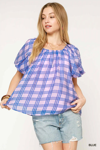 Blue and Pink Plaid Top